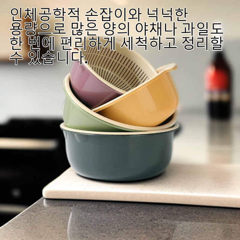 ● 인체공학적 손잡이와 넉넉한 용량으로 많은 양의 야채나 과일도 한 번에 편리하게 세척하고 정리할 수 있습니다.