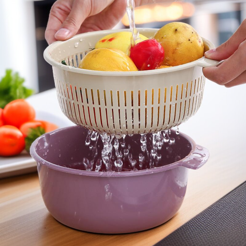주방에서 과일과 채소를 씻을 때 꼭 필요한 다기능 이중 배수 수납 바구니입니다.