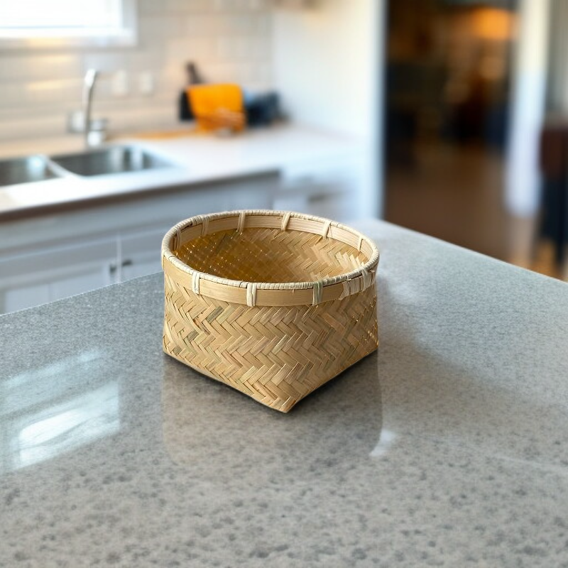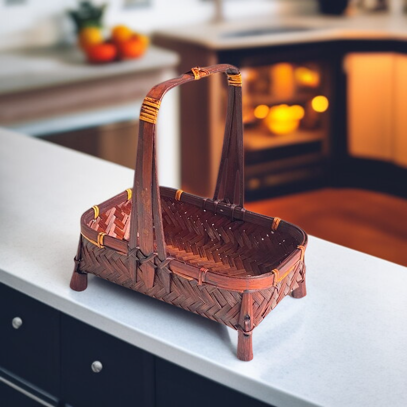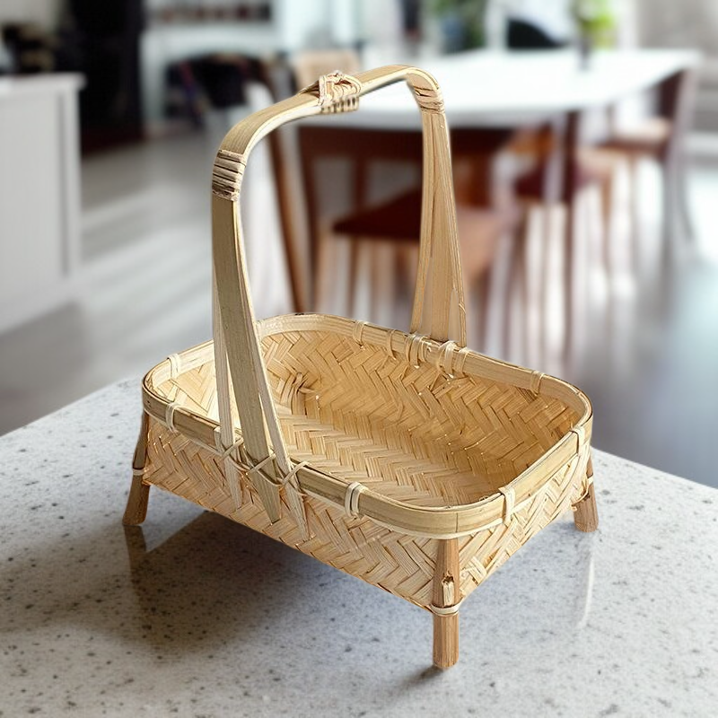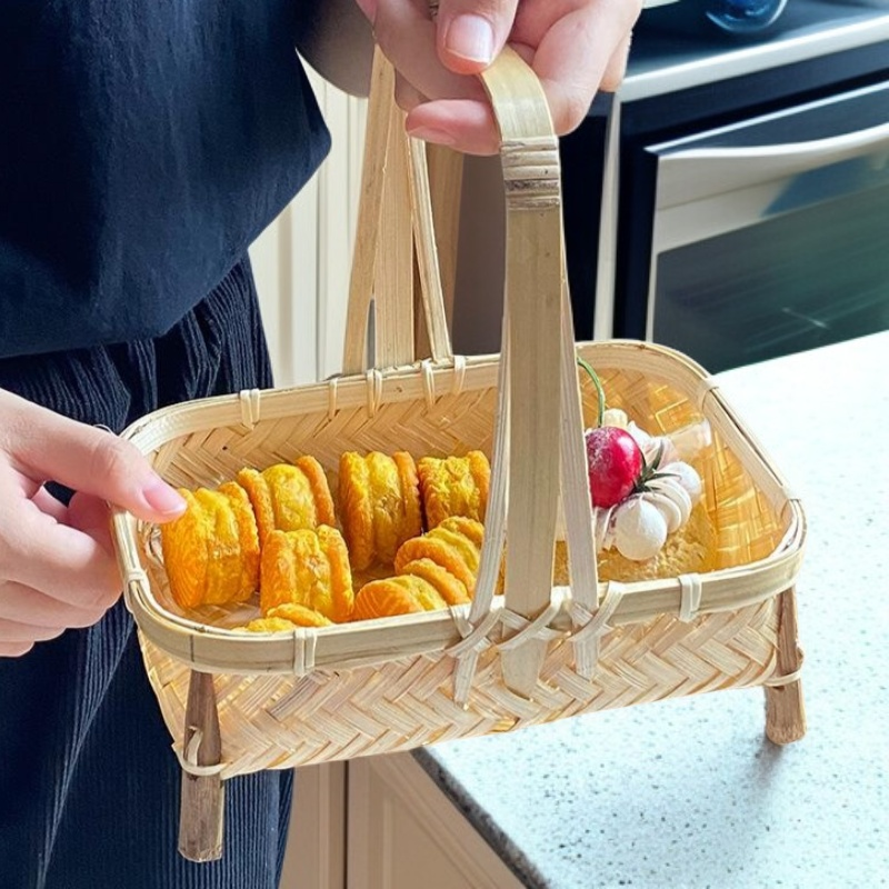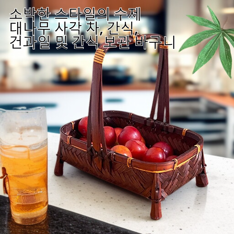 소박한 스타일의 수제 대나무 사각 차, 간식, 건과일 및 간식 보관 바구니