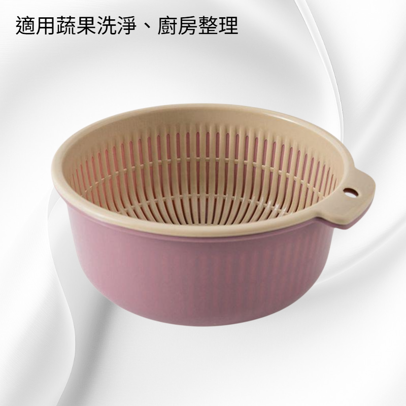 雙層設計分層瀝水,果蔬洗淨收納一體,提升廚房整潔,食品級材質安全無毒,適用多種食材,節省空間易清洗。